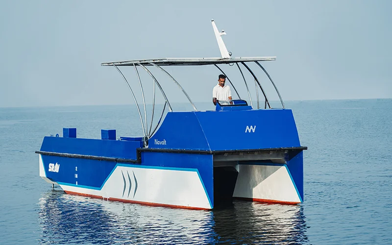 About 44 million tonnes of cargo is moved annually through these waterways using mechanized vessels and country boats, burning an unfathomable amount of fossil fuel in the process. When we electrified a mere 3kms out of these 14,500 km, within six years it measured up to planting 25000 trees. And our mission as a company that cares about the Earth and aims for cleaner and quieter oceans, is to electrify the entirety of these 14500kms, which will mean planting approximately 12,08,33,333 trees across the surface of Earth.