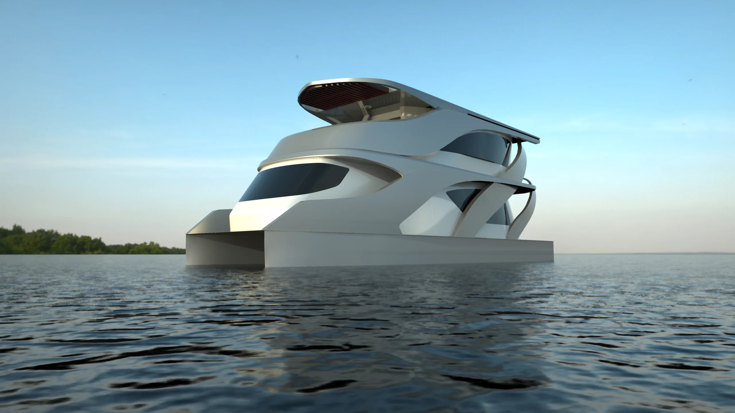 A solar-electric luxury yacht designed for refined and tranquil cruising. With premium design, silent propulsion, and long-range capability, it delivers an elegant and immersive on-water experience.